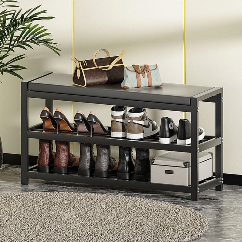 Introducing our Multi-layer Entryway Shoe Rack, a stylish and practical solution for organizing your shoes. Made from high-quality carbon steel, this shoe rack features multiple tiers of storage space, allowing you to neatly arrange your footwear. The sturdy metal frame provides stability and durability, while the premium PU leather cushion offers comfort and support. With its integrated bench design, it serves as a convenient seating option while putting on or taking off your shoes. Keep your entryway tidy and create a welcoming atmosphere with this sleek and functional shoe rack.