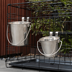 YES4PETS 3.8L Stainless Steel Pet Parrot Feeder Dog Cat Bowl Water Bowls Flat Sided Bucket with Riveted Hooks