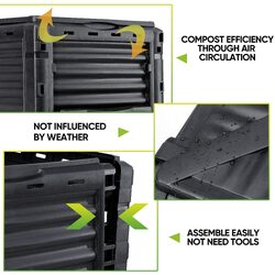 Our outdoor compost box has a short processing time, only takes about 4-6 weeks or less in warm temperatures. The fertilizer can be used directly in the garden to enrich the soil; It reduces waste and works efficiently.