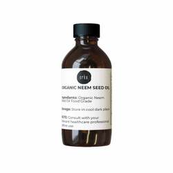 Organic Neem Seed Oil in Amber glass (round) bottle with euro dropper dispenser.