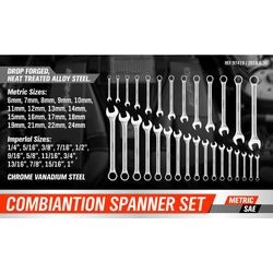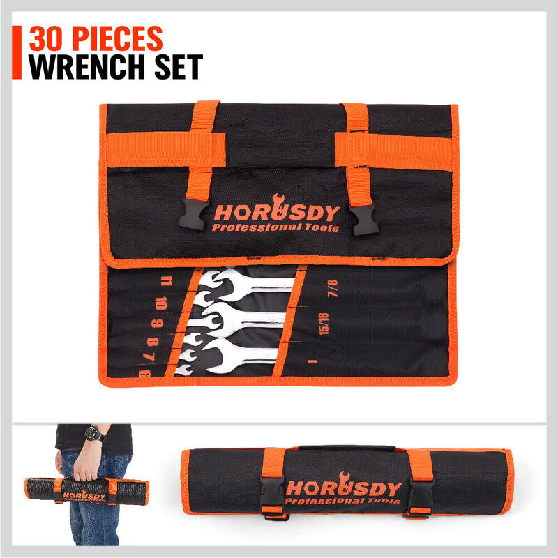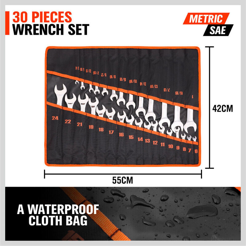 30Pc Combination Spanner Set Open Ring End Wrench Metric & Imperial CRV w/ Pouch