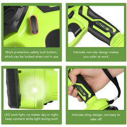 ???2 Powerful Batteries Included???This wood cutting battery powered chainsaw comes with 2 rechargeable Li-on batteries, providing 550W super strong power, each of which can support 40-50min runing time. You can get variable stepless speed by adjusting the intensity you hold the trigger.