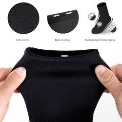 1. Premium water socks with anti-slipping rubber grips soles, Perfect for varieties water sports like paddle boarding, kite boarding, wakeboarding, kayaking and more. The elastic ankle straps can be adjusted to fit any ankle size and keep the socks on. Comfortable enough to wear all day.