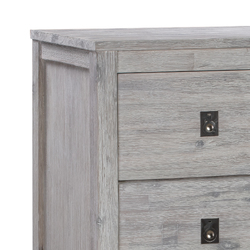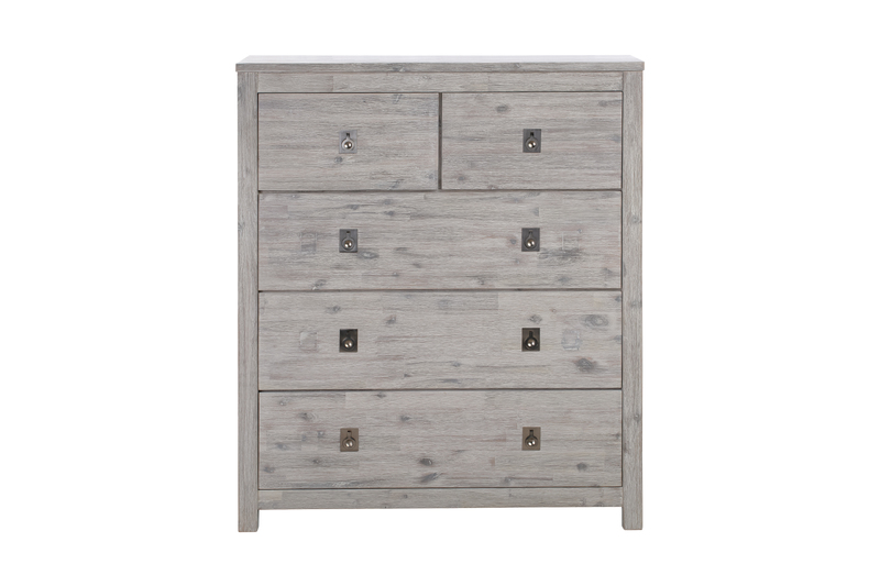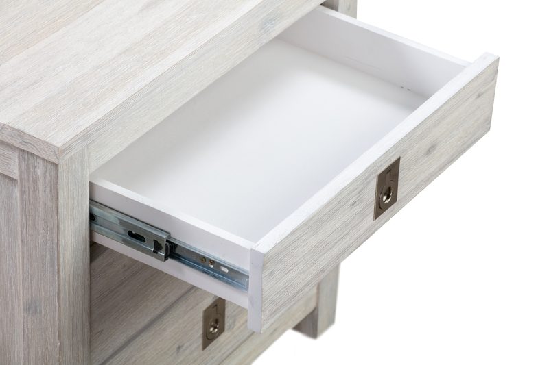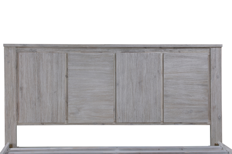 Package contents: 1X 4 Pieces Bedroom Suite with Solid Acacia Wood Veneered Construction in Queen Size White Ash Colour Bed, Bedside Table & Tallboy