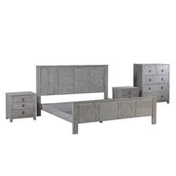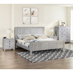 4 Pieces Bedroom Suite with Solid Acacia Wood Veneered Construction in Queen Size White Ash Colour Bed, Bedside Table & Tallboy