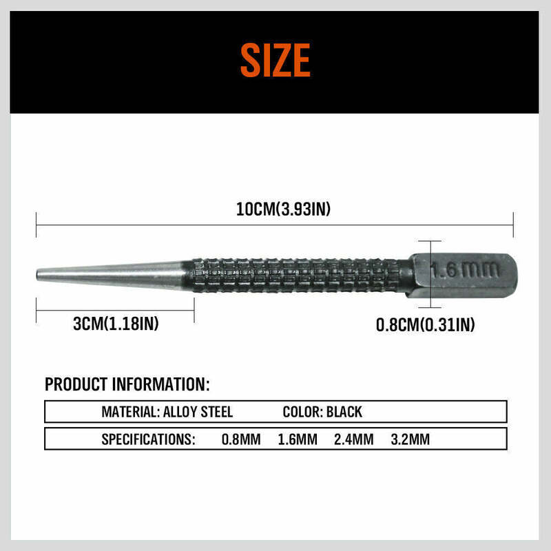 4Pc Nail Punch Set Heavy Duty Solid Steel Hole Punching Leather Gasket 0.8-3.2mm