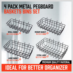4Pc Pegboard Baskets Set Storage Bins Peg Board Organizer 4 Size Display Hangers