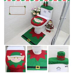 4pcs Christmas Toilet Seat Cover Rug Bathroom Set Santa Snowman Xmas Home Décor, Elf