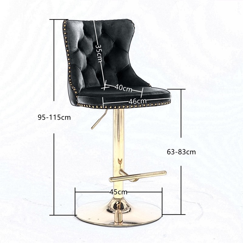 This bar stool features a sturdy golden chromed metal base with a built in 360° swivel function and footrest. A plastic ring is attached to prevent floor from scratching.