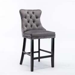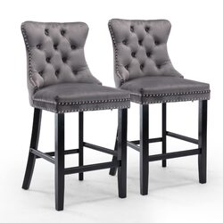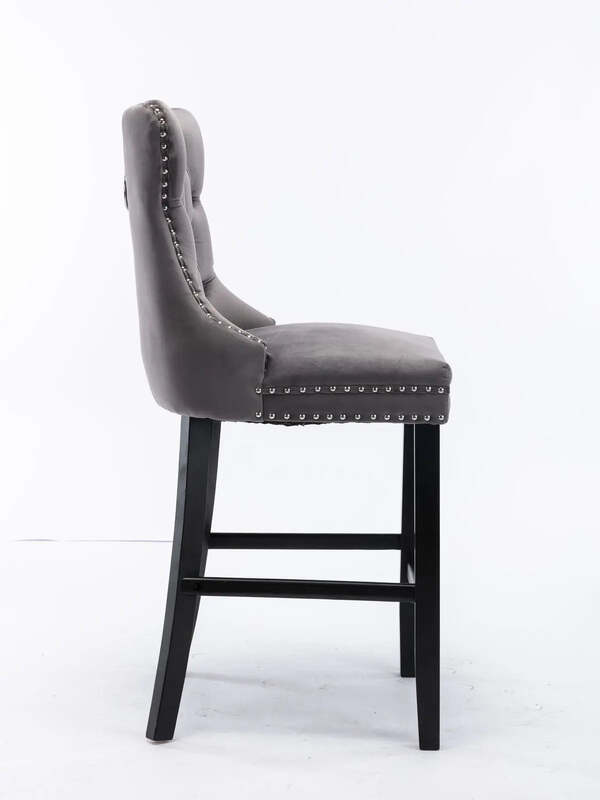 4X Velvet Bar Stools with Studs Trim Wooden Legs Tufted Dining Chairs Kitchen