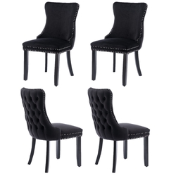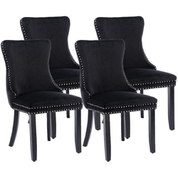 4x Velvet Upholstered Dining Chairs Tufted Wingback Side Chair with Studs Trim Solid Wood Legs for Kitchen