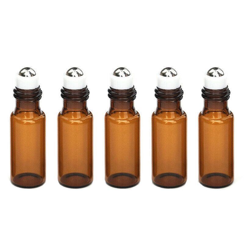 5/10Ml Roller Rollerball Perfume Essential Oil Roll On Ball Amber Glass Bottleau