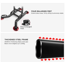 This 5-in-1 workout station offers a range of exercises such as chin ups,dips,pull-ups,weight lifts,leg raises,push-ups and speed ball. Fact is,there is so much you can workout to with this versatile fitness machine to push your body to its limits with results that matter. Constructed from heavy-duty,powder-coated tubular steel,the gym station is durable and strong and features large,non-slip rubber feet that will prevent unwanted movement,high-density and sweat- proof cushioning and padded handles and arm supports for truly safe and comfortable training regimes.