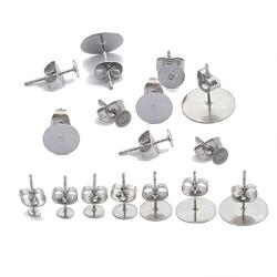 50/100/200PCS Earring Stud Posts Pads+Nut Backs Silvery Surgical Steel DIY Craft