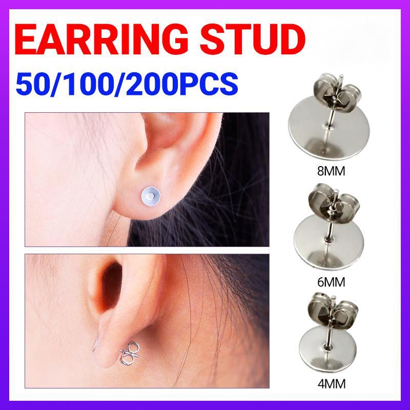 50/100/200PCS Earring Stud Posts Pads+Nut Backs Silvery Surgical Steel DIY Craft