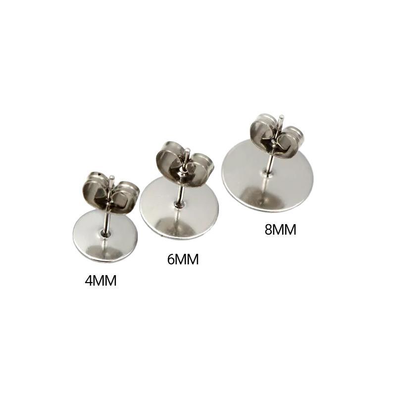 ?MATERIAL AND SIZE? The hypoallergenic earring posts and backs are made of steel; safe, and non-toxic. Earrings posts length: 12mm. 3 sizes flat pad diameter: 4mm 6mm 8mm, pin thickness 0.7mm. Earrings back length: 5mm and 3.5mm thickness.