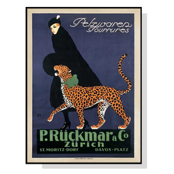 Wall Art 50cmx70cm Woman Walking Leopard Vintage Black Frame Canvas