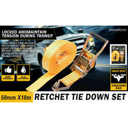 50mm x 10M Tie Down Strap Heavy Duty Ratchet Straps Trailer Boat 2000KG Loading