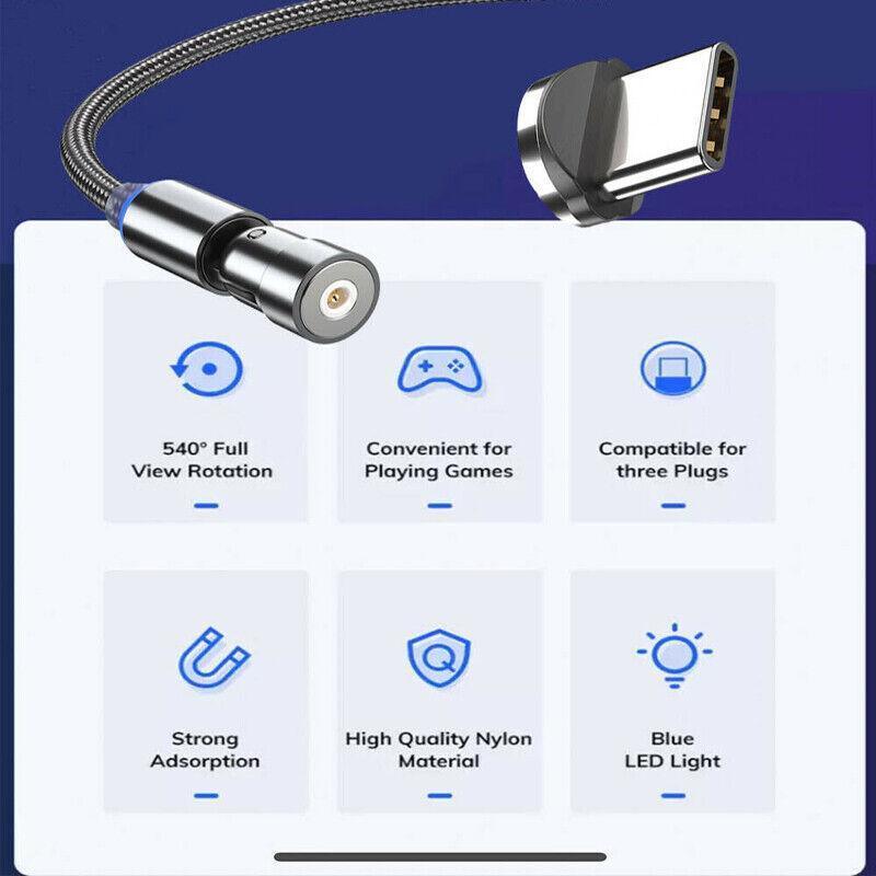 540� Rotate 3 In1 Magnetic Charging Cable For Usb-C I-Product Microusb Superfast