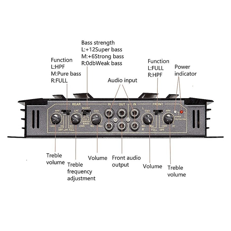 The amplifier is finely crafted with solid components and a well-coordinated motherboard, minimizing the risk of failures. Boasting energetic and strong power, it effortlessly drives subwoofers. Its nondestructive amplifier installation ensures a 360° round sound, delivering an impressive audio performance.