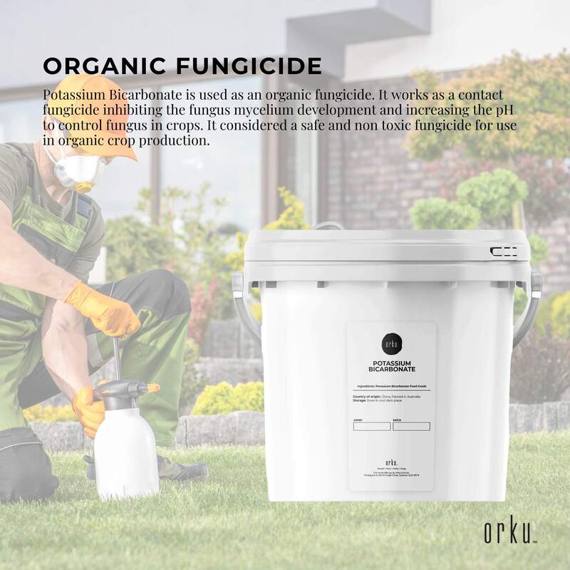 Potassium Bicarbonate is used as an organic fungicide. It works as a contact fungicide inhibiting the fungus mycelium development and increasing the pH to control fungus in crops. It considered a safe and non toxic fungicide for use in organic crop production.
