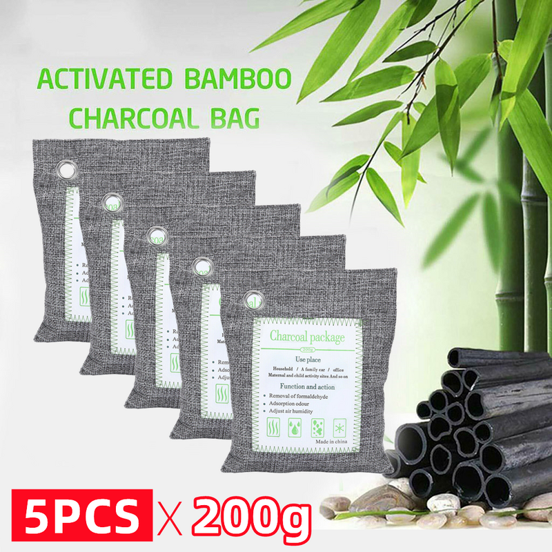 5Pcs 200g Air Purifying Bags Activated Bamboo Charcoal Bags for Home Car Shoes