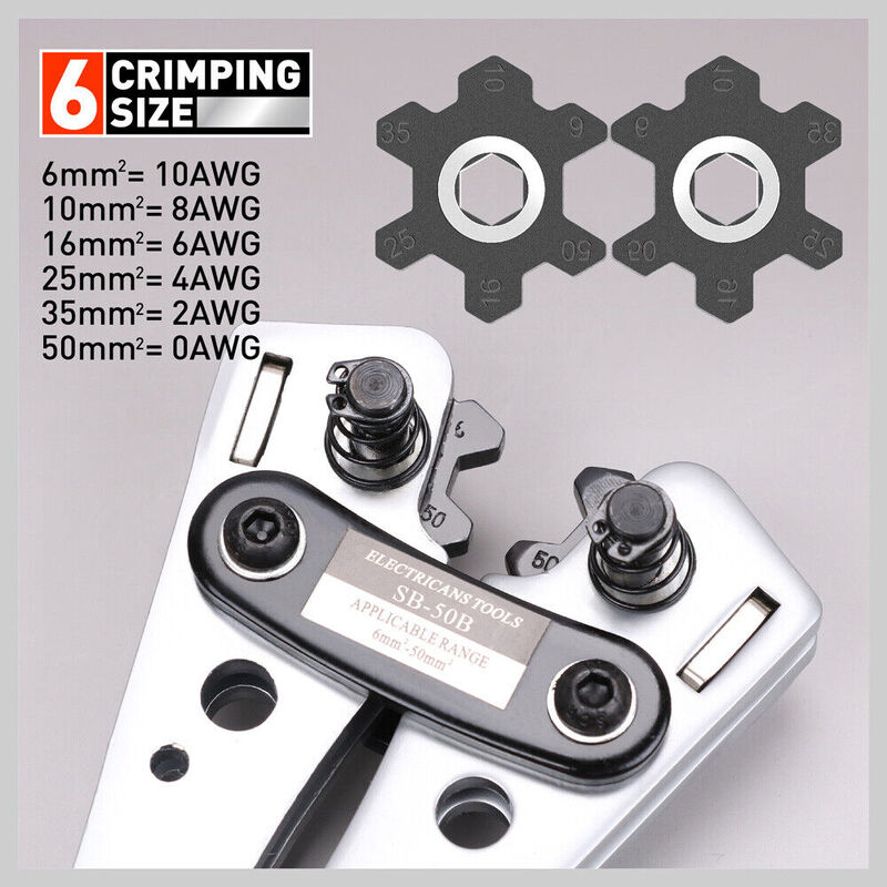 6-50 mm2 Wire Crimper Cable Crimp Electric Tube Crimping Hand Tool Battery Lug