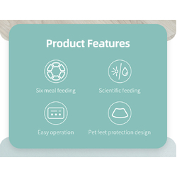 Always back home late or away on short trips? You can count on our 6 Meal Automatic Pet Feeder 180ML to cover a scheduled meal plan of up to 6 meals a day for your dog. On top of its pet-friendly design, the dual power supply system gives you the option to use 6-Meal Automatic Feeder fully battery-operated - so those paws don?? get caught between the wires when you??e not there to supervise. Have complete peace of mind as the built-in sensor also detects and avoids colliding with your dog as it rotates.