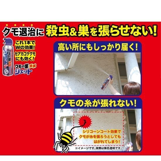 Silicone coat prevents spiders from forming webs for about three months *, while direct spraying has the dual effect of eliminating spiders. (* varies depending on usage environment and weather conditions.)
