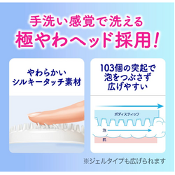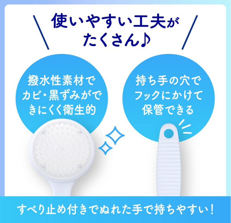 Body stick with zero idea of skin friction to the skin that tends to be dry in modern people. The back that is difficult to reach also USES frictionless washing method... can be washed with hand washing feeling... use the soft soft touch material that can be gently washed... with 103 protrusion does not crush foam, can be spread to every corner... with water repellent material... It is not easy to blacken and hygienic. It can be stored with a hook in the hole of the handle.