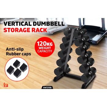 Keep your weights well-organized at home using the new Dumbbell Storage Rack from Bargains Online. A high-strength vertical dumbbell rack that can support up to 100kg of weight, made thoughtfully from heavy-duty powder coated steel construction, especially designed for long-lasting use. Plus, it comes with leg rubber caps for rack stand stability. An easy-to-assemble dumbbell rack and a very helpful dumbbell storage to keep your workout space clean and well-managed.