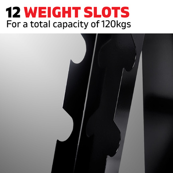 - 12 weight slots for a total capacity of 120kgs (266lbs)