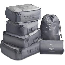 6 Pcs Waterproof Compression Packing Cubes Large Travel Luggage Organizer Storage (Grey)