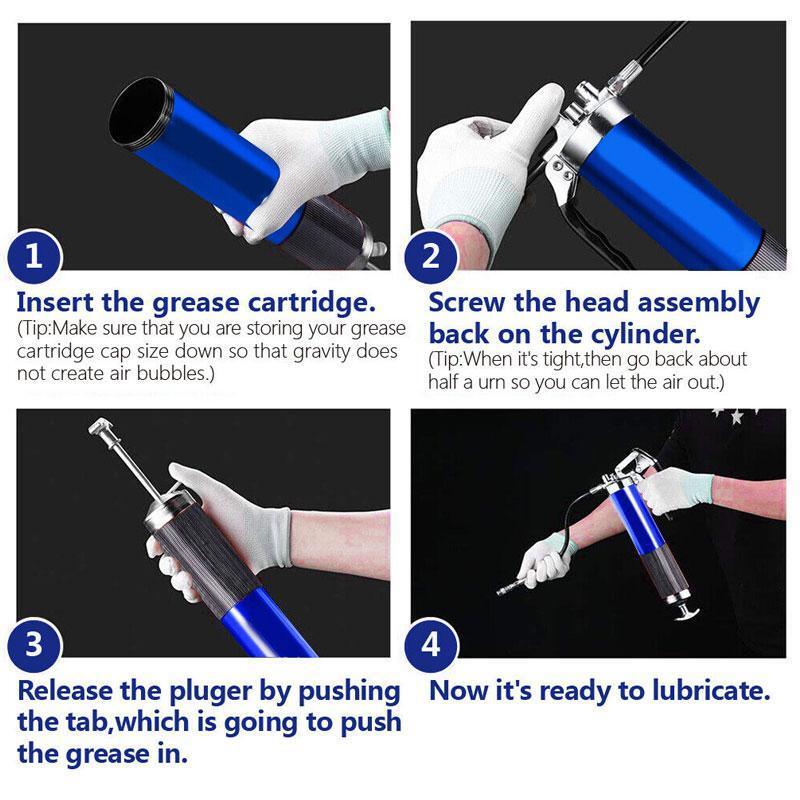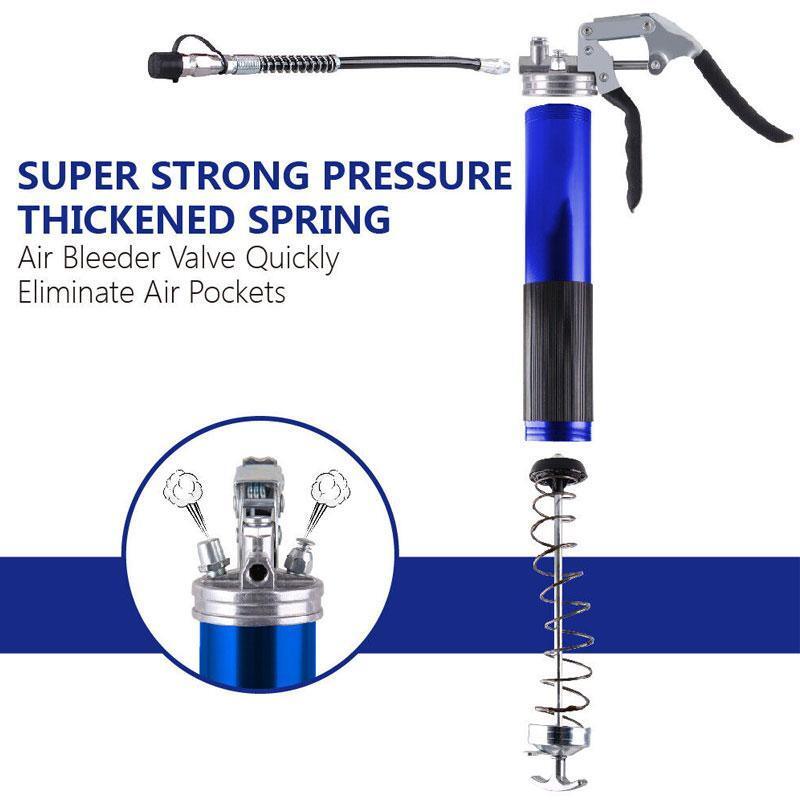 6000PSI Grease Gun Pressure Pistol Grip Dual Flow Flex Hose Industrial Quality