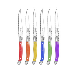 Laguiole Silhouette 6 piece Multi Colour Steak Knife Set is a premium range epitomising quality and elegance. Presented in the pine wood traditional presentation boxing it is a great gift or personal purchase to finish a table setting in the most alluring way.