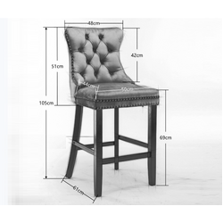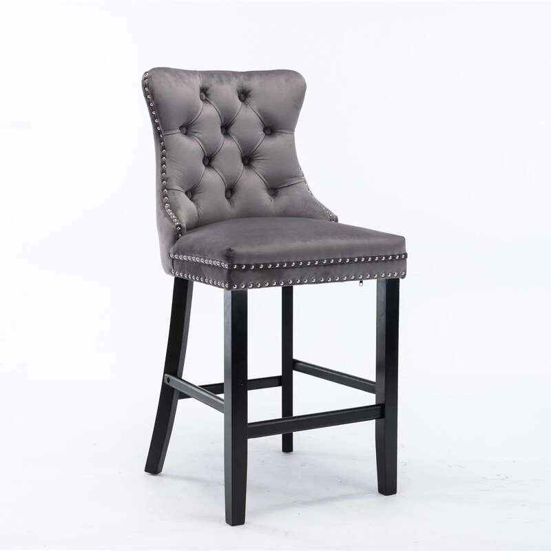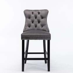 6X Velvet Bar Stools with Studs Trim Wooden Legs Tufted Dining Chairs Kitchen