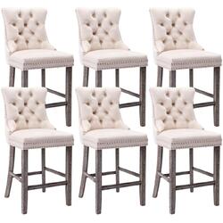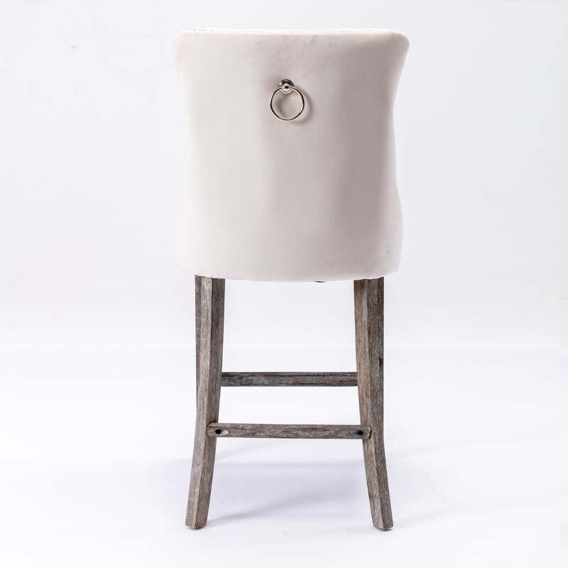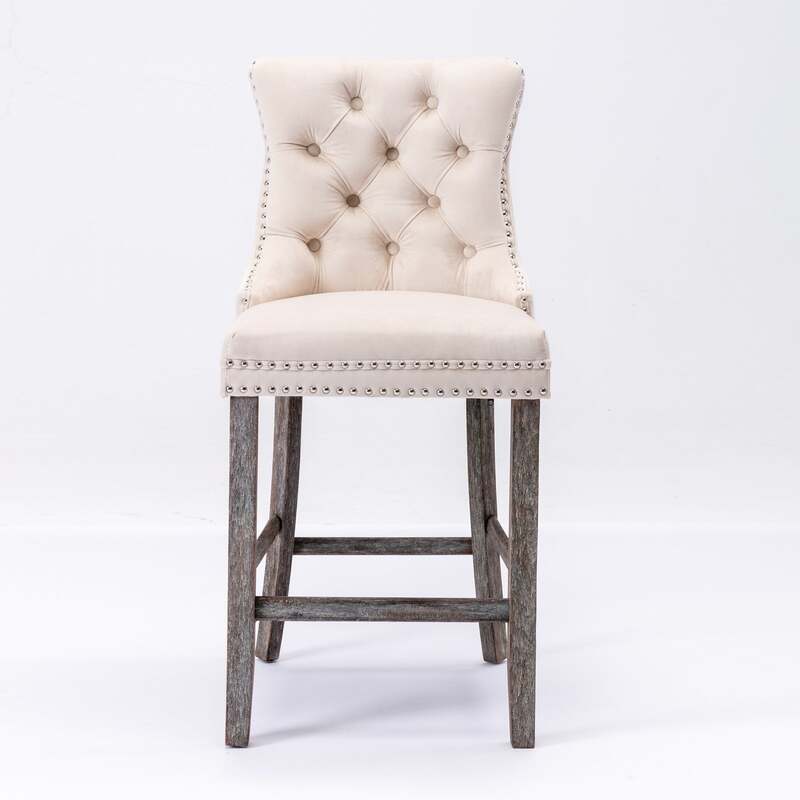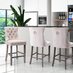 6X Velvet Bar Stools with Studs Trim Wooden Legs Tufted Dining Chairs Kitchen