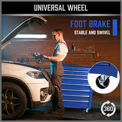 7-Drawer Drawer Tool Box Trolley Cabinet - Blue or Black Heavy Duty Tool Chest Garage Storage Cart Organizer