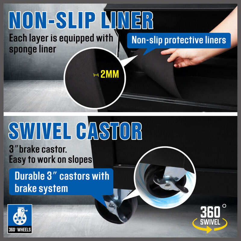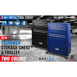 7 Drawer Tool Box Chest Cabinet Trolley Toolbox Garage Storage Lockable Blue