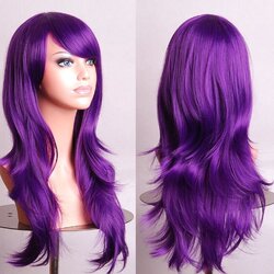 70cm Wavy Curly Sleek Full Hair Lady Wigs w Side Bangs Cosplay Costume Womens, Purple
