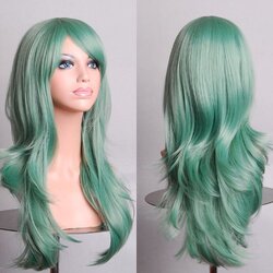 70cm Wavy Curly Sleek Full Hair Lady Wigs w Side Bangs Cosplay Costume Womens, Jade