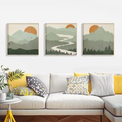 Wall Art 70cmx70cm Sage Green Landscapes 3 Sets Wood Frame Canvas