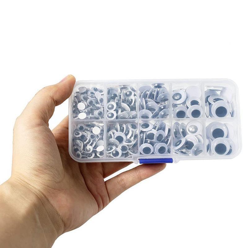 1 * Sticky wiggle googly eyes set(4mm * 300PCS, 5mm * 200PCS, 6mm * 100PCS, 8mm * 50PCS, 10mm * 26PCS, 12mm * 22PCS, 15mm * 20PCS, 18mm * 12PCS).