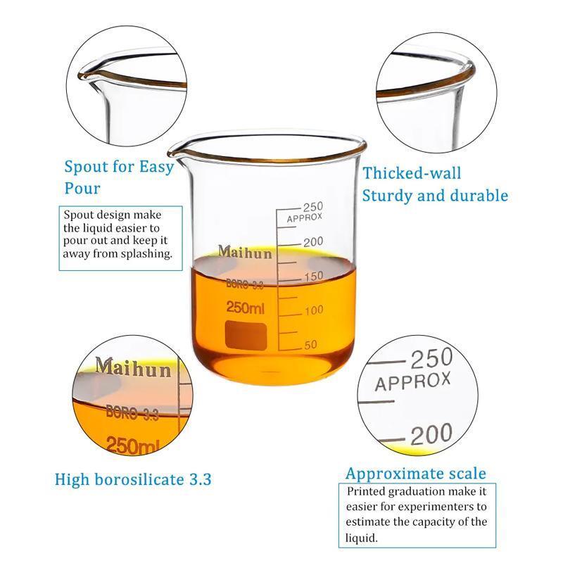 7PCS/Set Low Form Glass Beaker 5ml-250ml Borosilicate Measuring Lab Glassware