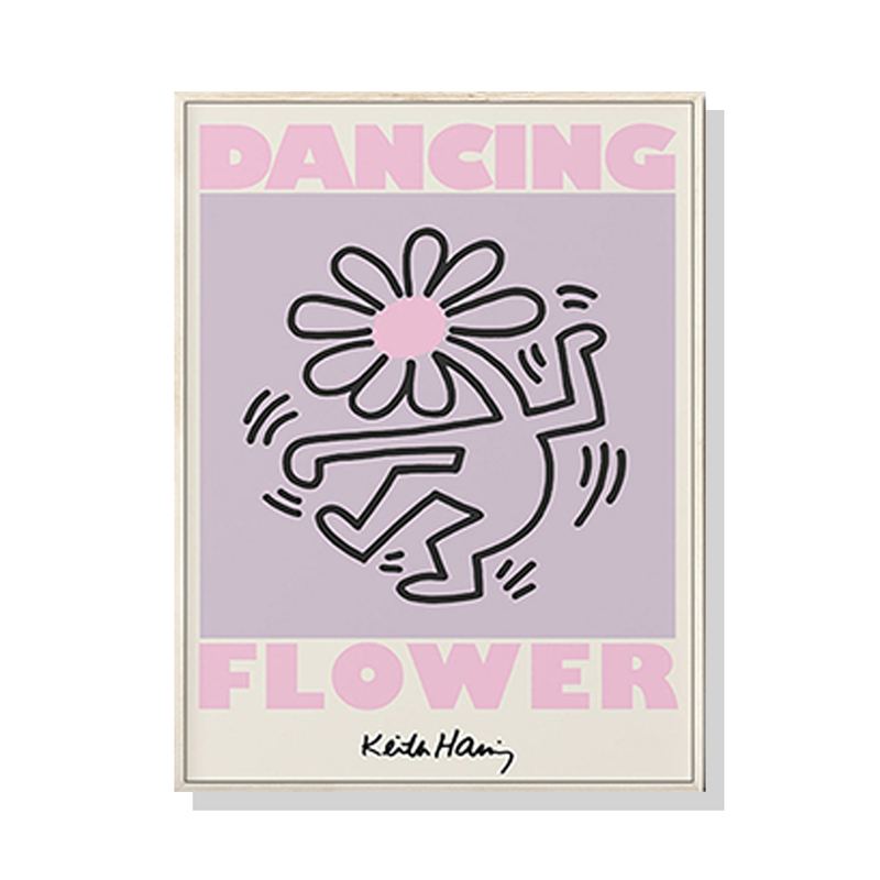 Wall Art 80cmx120cm Keith Haring Dancing Flower Wood Frame Canvas