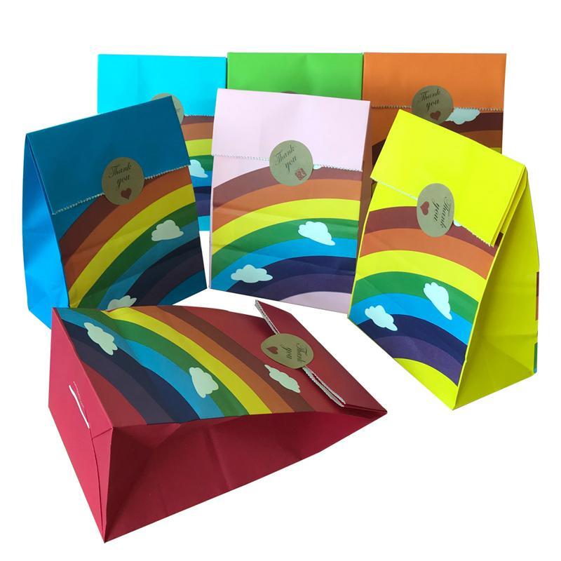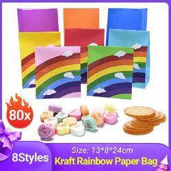 80PCS Kraft Paper Party Bag Seal Birthday Favor Kids Rainbow Candy paper bags