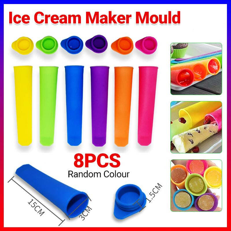 8PCS Silicone Ice Block Moulds/Ice Cream Molds/Icy Pole Jelly Pop Popsicle Maker