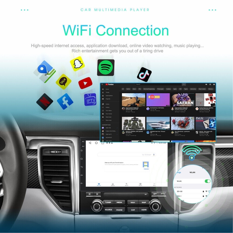 Wireless Android auto: The Wireless Android auto car system can closely integrate the user's Android phone and player, and realize navigation, make calls, send and receive information, listen to music and other operations through data cable connection;