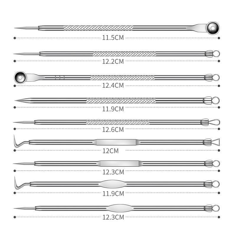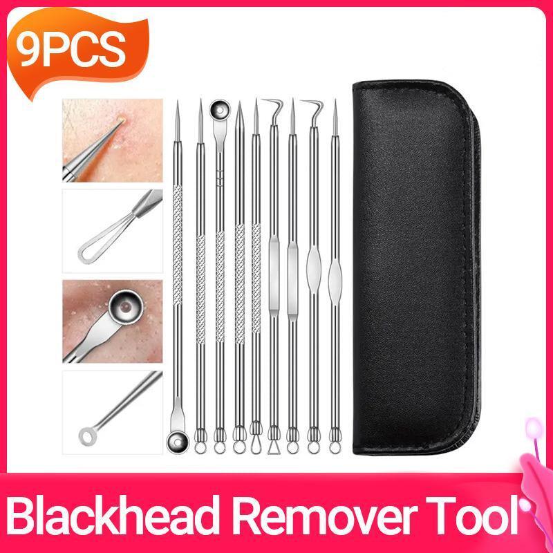 9PCS Blackhead Remover Extractor Tool Pimple Blemish Popper Comedone Kit Clip