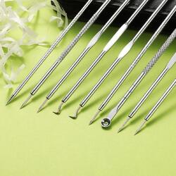 - 9-piece double-sided extractor tools which include spoon extractor tips, loop extractor tips, and a spade cleaner tip